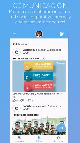 Du kan skriva kommentarer på alla inlägg som finns i flödet. Och du kan lägga till foton och videor i dina kommentarer. Vi har lagt till möjligheten att skapa egna inlägg, med samma flöde som du är i, så att du kan skriva kommentarer och få feedback från dina anställda, kunder och klienter.